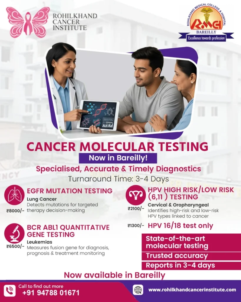 Rohilkhand Cancer Institute is a 200-bed tertiary care Oncology Centre situated in the heart of Bareilly. Rohilkhand Cancer Institute was started in 2022 on the campus of the prestigious Rohilkhand Medical College and Hospital, Bareilly.